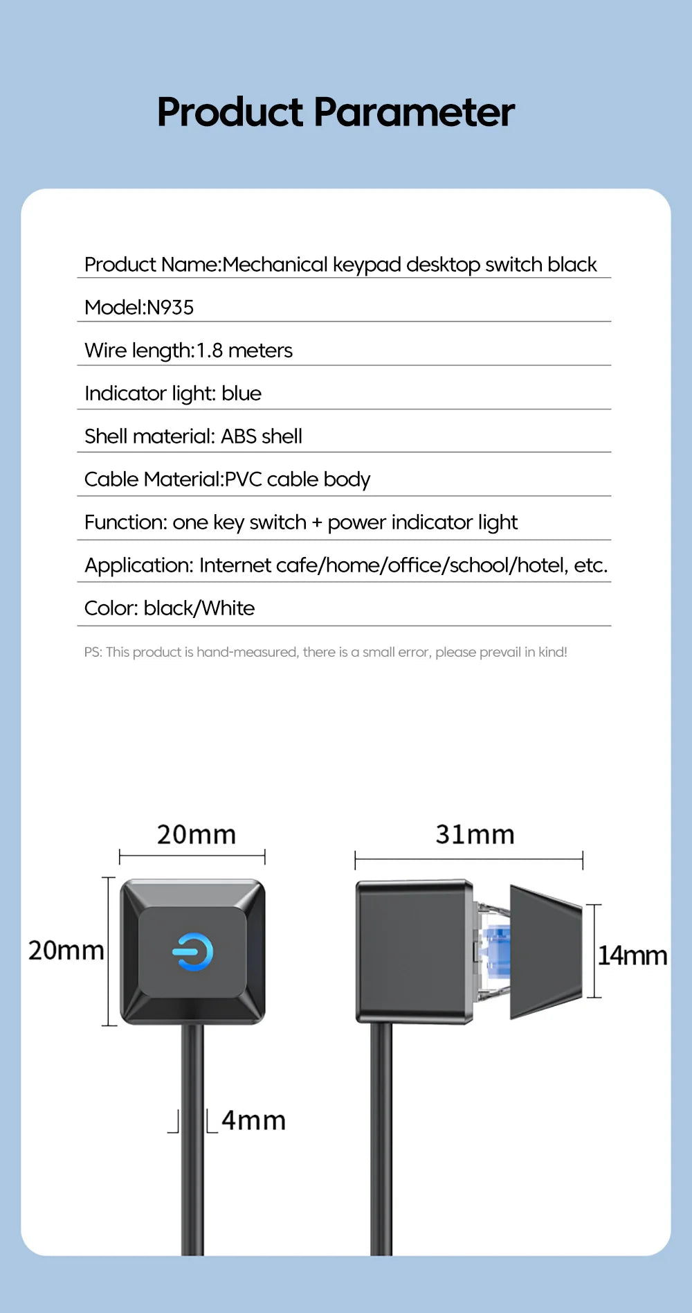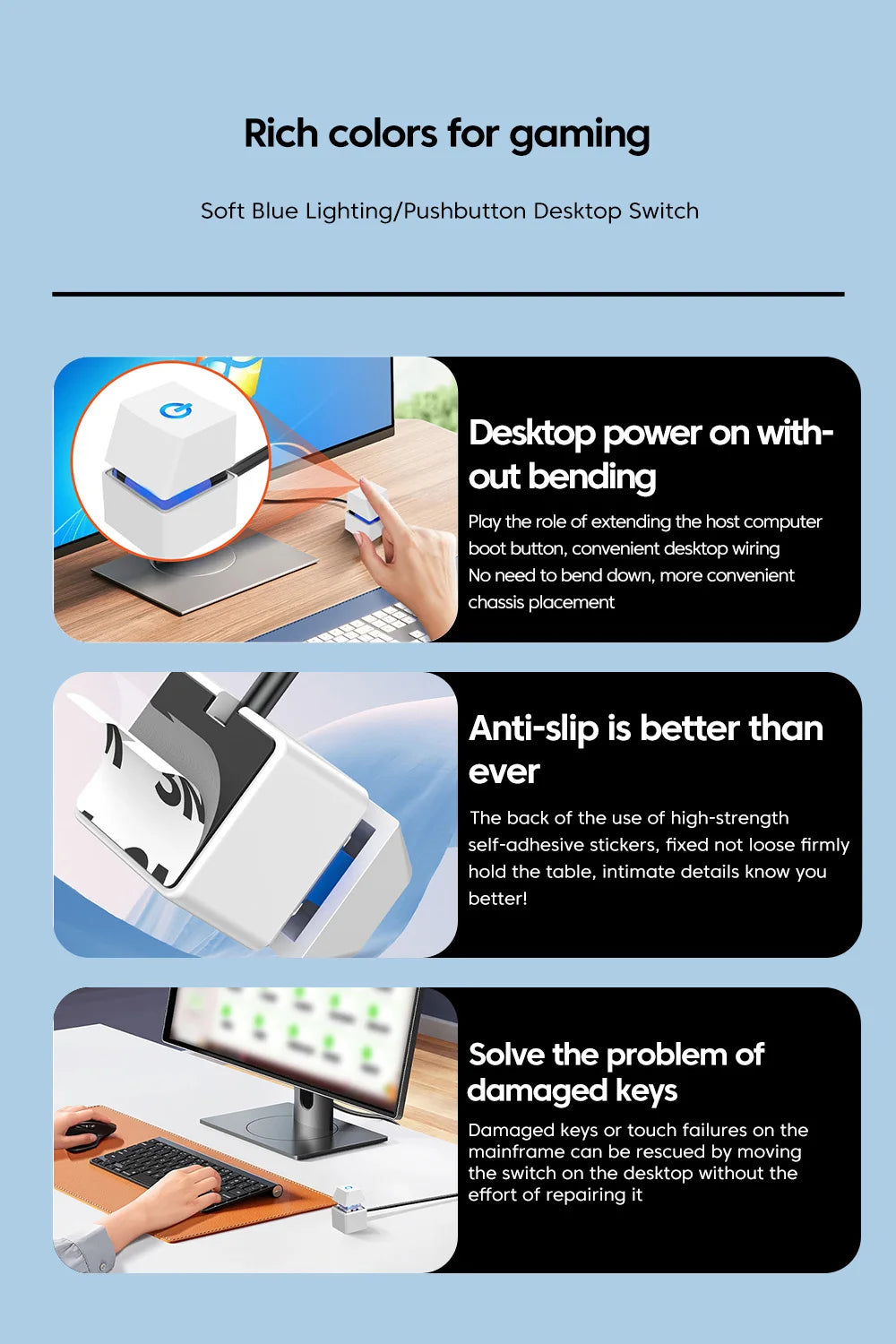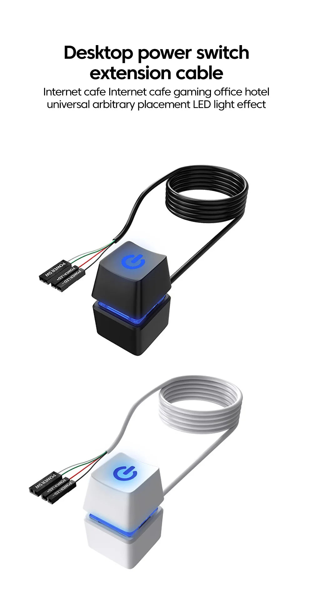 Computer Desktop Switch Blue LED Lights PC Power Button 1.8m Extension Cable