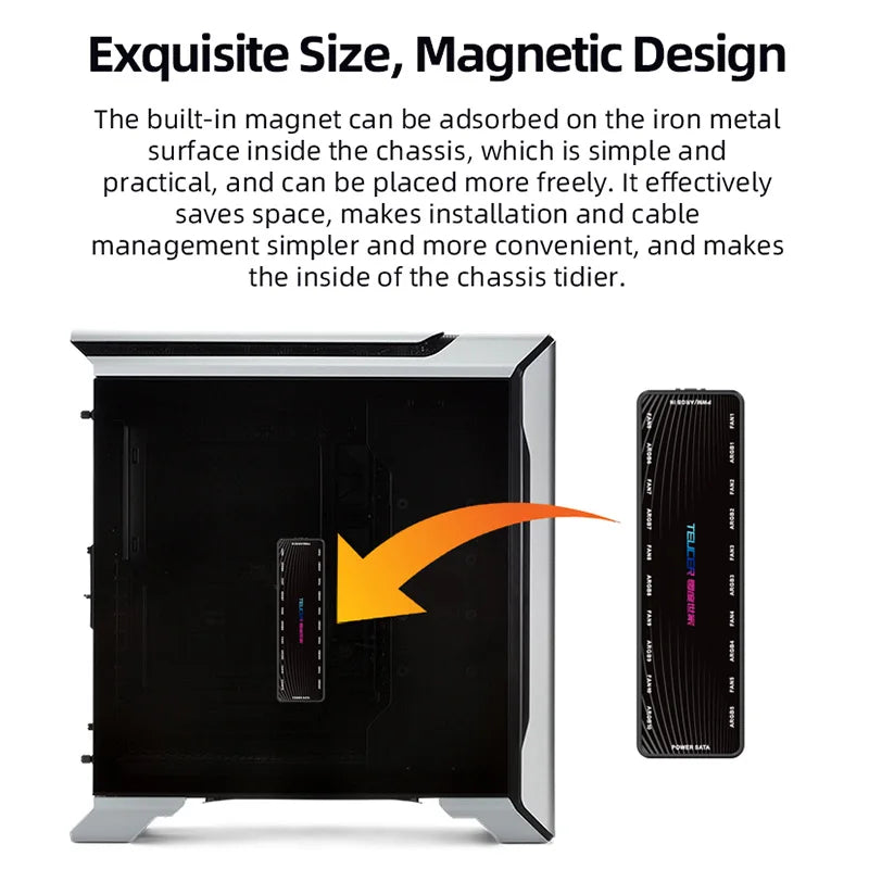 Magnetic Suction Design: Equipped with a magnetic base for easy installation and secure attachment to the PC case.